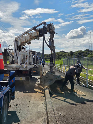 主に電柱建柱用の穴掘りに使用しており、狭い場所や硬い地盤でも安定した品質で施工を行えるのが特長です。